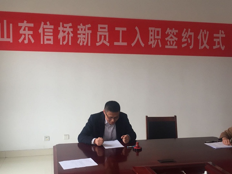 2018年11月30日下午3點(diǎn),新員工入職簽約儀式在泰安信橋二樓會議室舉行,公司副總石振偉與新員工李佳欣參加,同時公司財務(wù)總監(jiān)張燕與人事人員出席。