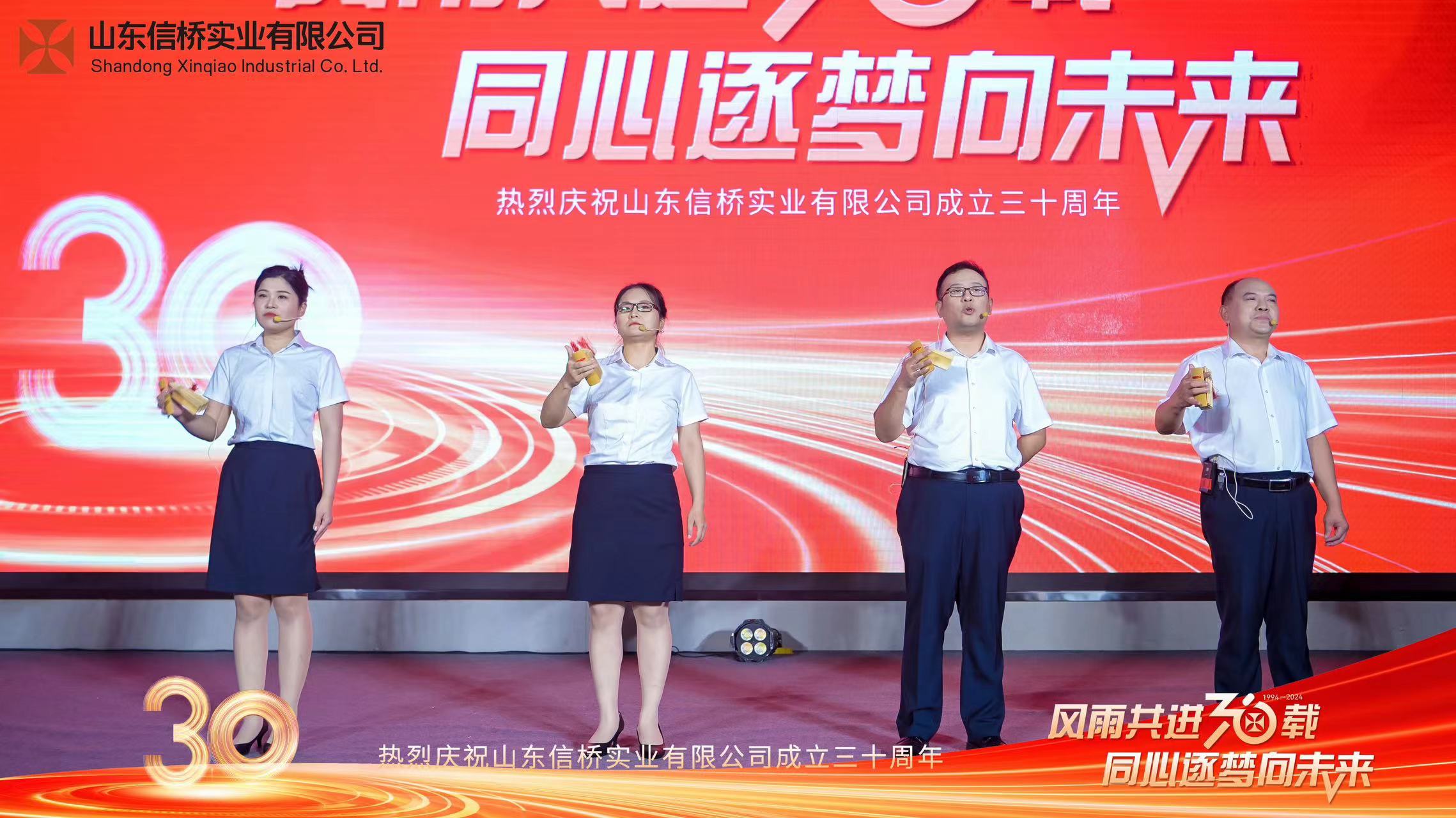 四位主持帶來詩朗誦《30而立,行穩(wěn)致遠》,隨后,全體信橋員工帶來大合唱《信橋之歌》。